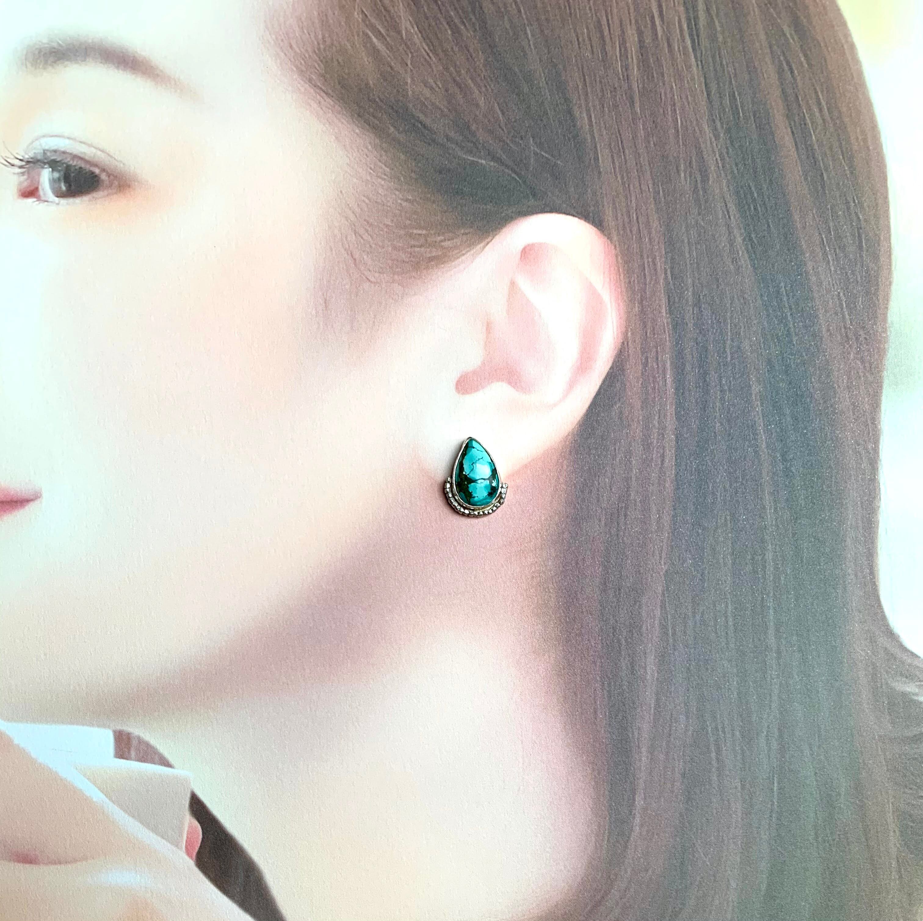 チベット産天然ターコイズ約15×10ミリ ドロップシェイプ使用。