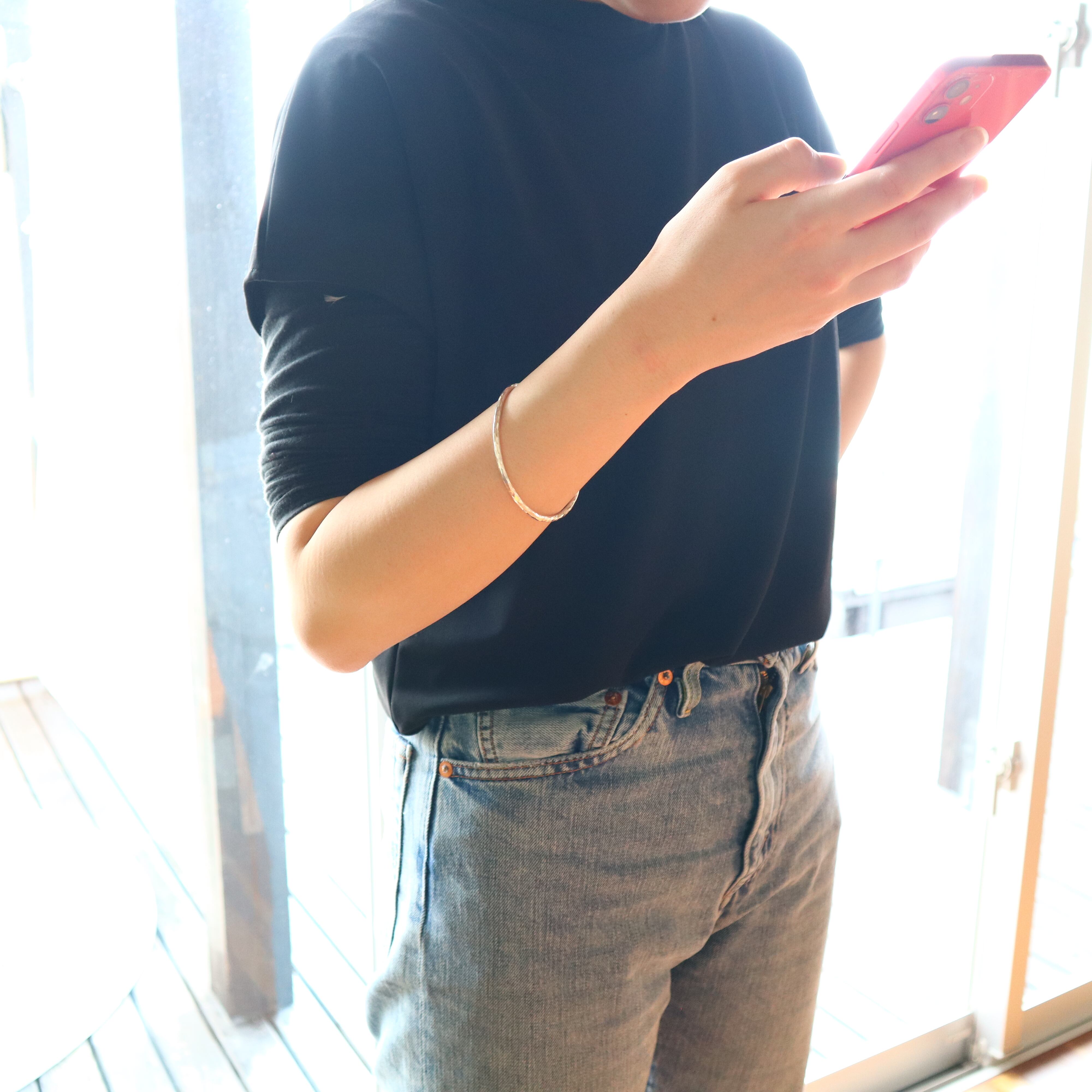 お手持ちのバングル、ブレスレットと重ね付けも素敵です。